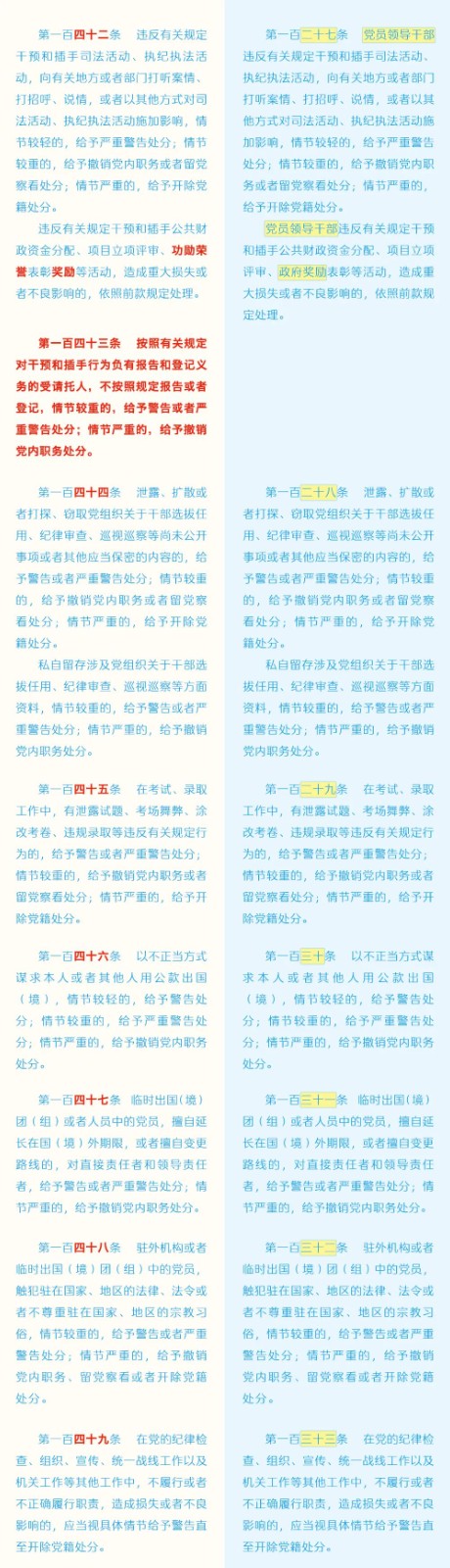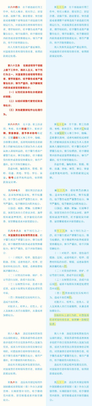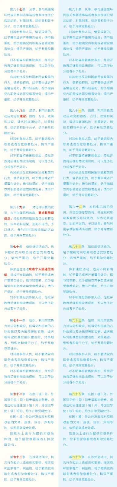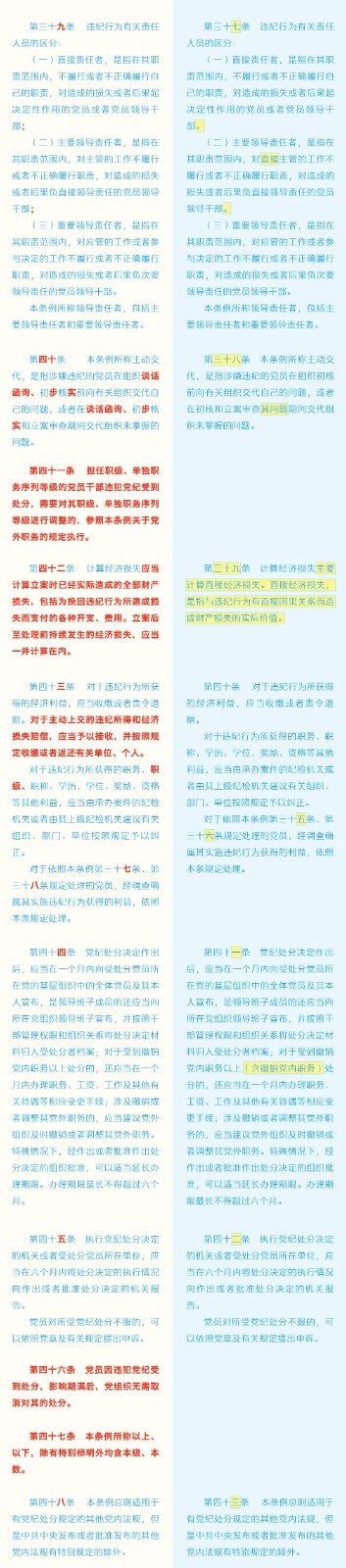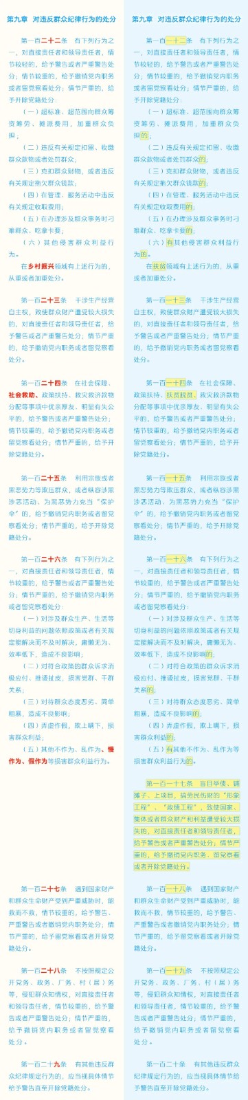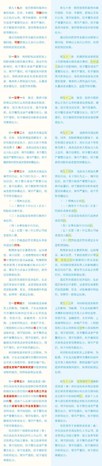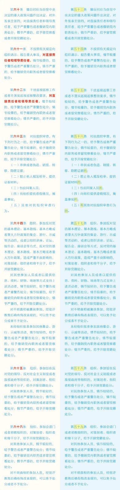 《中國共產(chǎn)黨紀(jì)律處分條例》修訂條文對照表 發(fā)表時間:2024-01-04